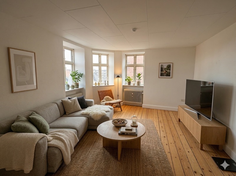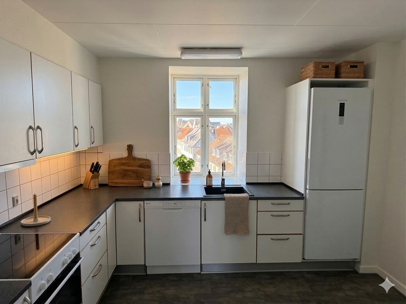 Indretningsbillederne er visualiseringer genereret med AI og skal alene betragtes som inspirationsbilleder. De er derfor ikke målfast. Lejligheden fremstår tom ved fremvisning.